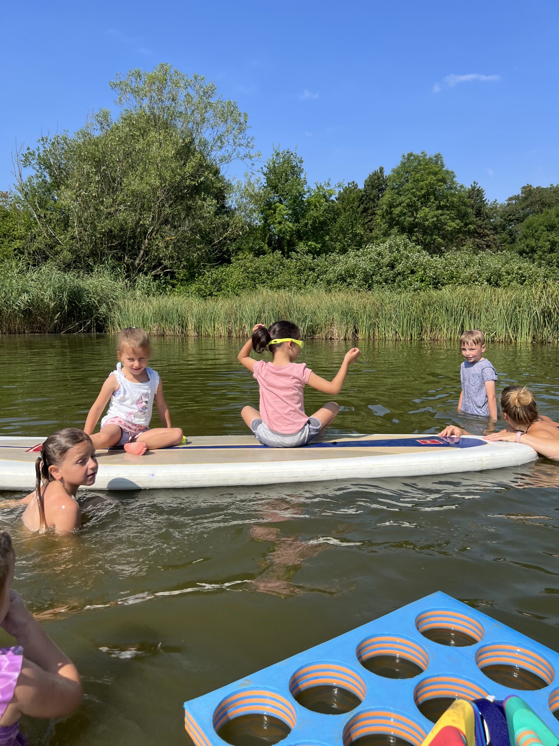 Ano je to tak plavecký příměstský tábor a navíc v přírodě. A ještě bonus s instruktorkou plavání, průvodkyní v lesní školce a coachem Surf Areny.